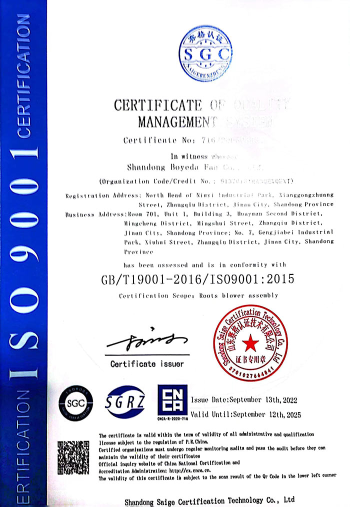 山东博业达风机有限公司坐落在有着国家园林城市、国家卫生城市美誉的山东省章丘市东外环工业园,距离济南国际机场半小时路程,地理位置优越,交通便利。博业达风机经过十余年产业发展和升级,已经成为集BYD系列罗茨鼓风机,高压罗茨鼓风机、负压罗茨真空泵、回转式风机、离心风机等系列机械产品研发设计和生产制造的多元化机械企业。 我公司拥有先进的计算机辅助设计制造、CNC加工技术,采用计算机辅助设计、CAPP、CT等信息技术提高了产品设计制造精度,缩短了设计和制造周期。公司还拥有进口的全自动加工中心、数控镗铣床、动平衡仪等众多国内外先进、高精度加工设备,具备高水平、规模化、现代化机械加工制造车间。公司完成了内部质量管理体系的实施与控制,实现了产品从研发设计到成品出厂的自主质量控制,建立和完善了从设计生产,到质量、安装和服务的全过程自控体系,为产品的稳定性、耐用性提供了充分依据和可靠保障。 目前我公司主要产品BYD三叶罗茨风机、B...